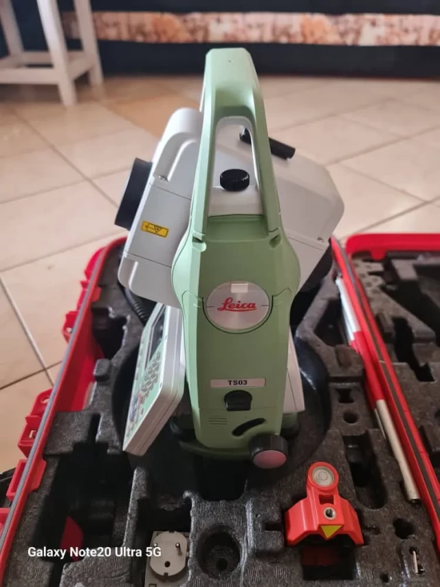Leica TS03 5 Second Total Station (almost new). Leica TS03 5 Second Total Station, ideal for precise land surveying tasks. The Leica TS03 5 Second Total Station is a high-precision instrument designed for exacting land surveying applications. With an angular accuracy of 5 seconds and a reflectorless range of up to 500 meters, it ensures reliable measurements over considerable distances. The device boasts a powerful magnification capability, although the exact level is unspecified. It can measure distances up to 3500 meters, making it suitable for a wide range of surveying tasks. Built to withstand harsh environmental conditions, it carries an IP66 rating, signifying strong protection against dust and water. Data management is made easy with a generous 2GB of onboard storage. The TS03 model is a testament to Leica's reputation for quality, offering up to 18 hours of battery life, ensuring productivity through extended fieldwork sessions.