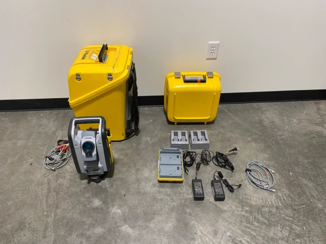 SPS930 1" GUN WITH MACHINE CONTROL OPTION. The SPS930 1" Gun with Machine Control Option is a high-precision surveying instrument that boasts an angular accuracy of 1". This refurbished unit, with an item number 58504021, is from the reputable brand Trimble and is a model SPS930 1" DR+. It comes equipped with a charging kit, three batteries, and hard carry cases, ensuring it remains in excellent condition. The gun has a reflectorless range and distance measurement capability in meters, although specific values are not provided. It features data storage in gigabytes, AutoCenter, and Target Tracking functionalities, but does not support imaging or scanning. The environmental conditions it can withstand are not specified. This unit was part of our dealership's rental fleet and has only been on two rentals, indicating minimal usage. It has been diligently serviced and calibrated annually, with the last calibration date on June 15, 2025. The SPS930 is available in a quantity of one and comes with a warranty, the duration of which is not mentioned. Manufactured in 2023, this instrument is an excellent choice for professionals seeking reliable and accurate surveying equipment.